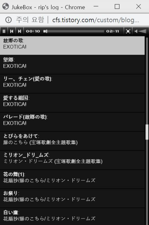 지금 이 스킨으로 바꾸기 전의 블로그 스킨은 캡쳐도 못해 아쉬워서, 생각난 김에 당시 '나만의' 주크박스 흔적은 남겨놓고자 한다.