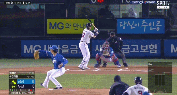 - 원아웃 만루에서 바뀐 투수 홍건희 선수가 오재일 선수를 상대로 패스트볼 7개를 던지며 끝내 병살처리한 순간.