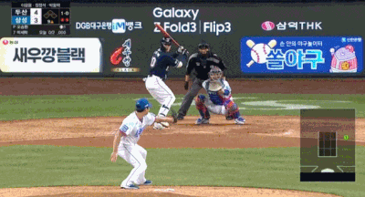 그 와중에 9회 말에 올라온 김강률 선수는 올라오자마자 구자욱 선수한테 홈런을 맞는데 어처구니가 없-