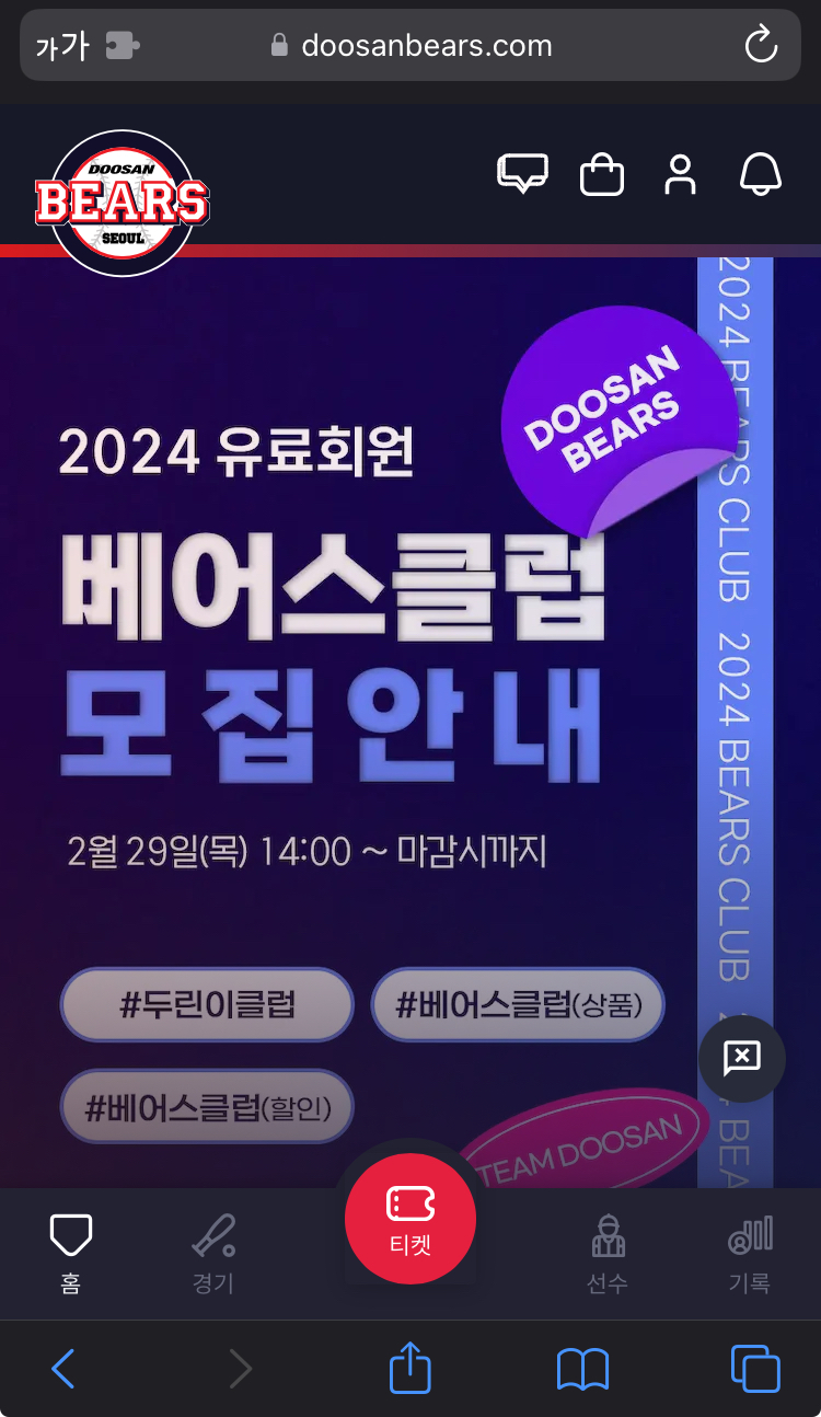 아아 맞다. 드디어 이 팀 공식 홈페이지가 모바일 웹 정비를 끝냈다! 2024년에!! 공홈 접속이 모바일로 이렇게 깔끔하게!!!