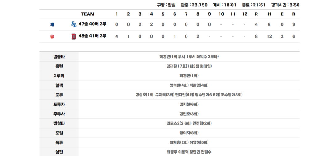 더불어.. 오늘은 6주 알바생 시라카와의 첫 선발경기였고 마음을 비운 만큼 특이점은 없었으나, 짚고 넘어가야 할 것 중에 하나는 두산 소속의 외국인 타자 라모스가 그라운드 안에서 해야 할 플레이를 안 하고 있다는 것이다.
