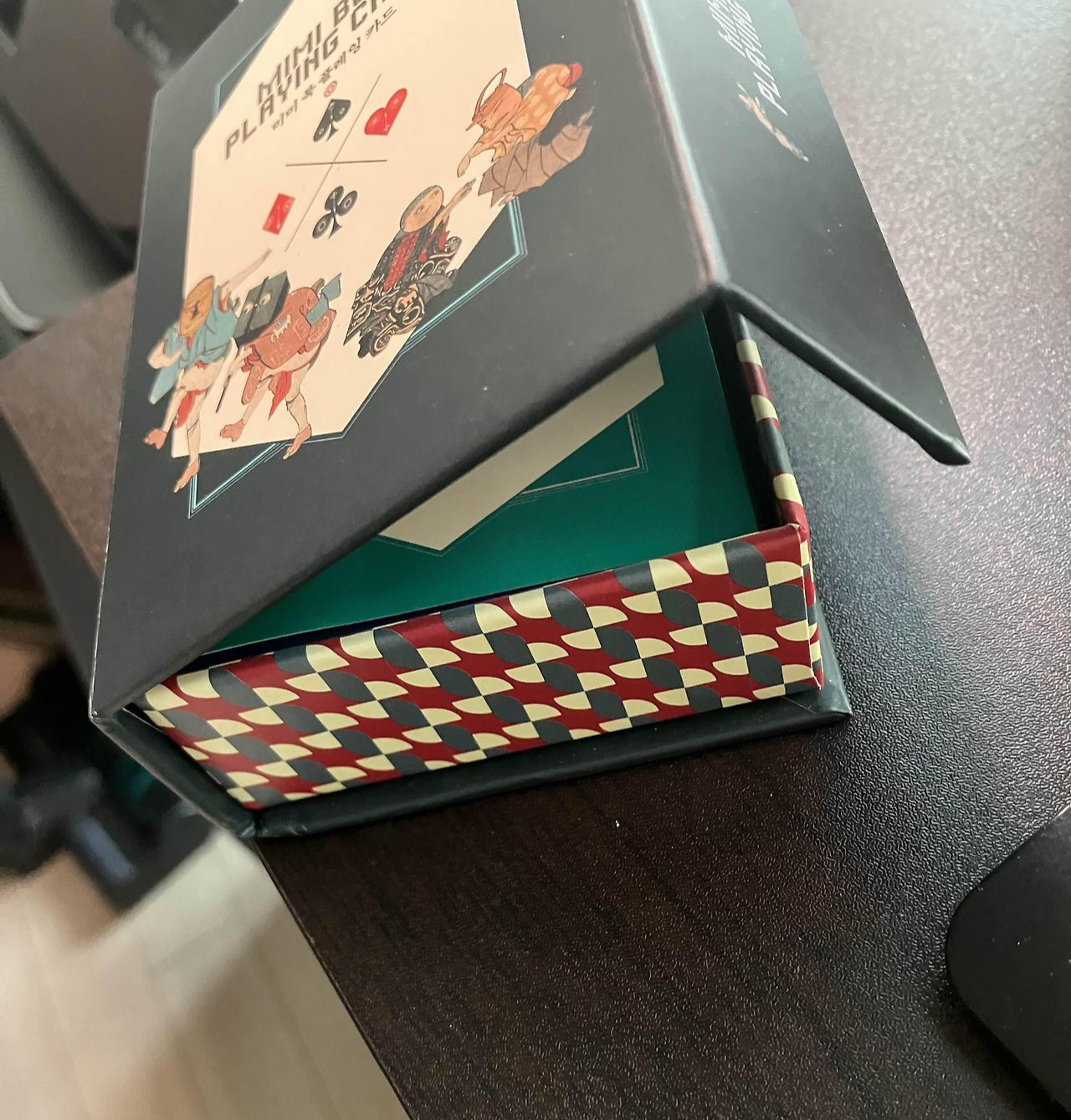그래서 도착하자마자 일단 트럼프카드부터 확인 했었다. 저 케이스부터 심상치 않은 거 보이시는지? 자성도 강해서 만약 떨어뜨리면 찌그러졌지 열리지 않을 것이라는 주입식 믿음을 받으며 케이스를 오픈했는데,