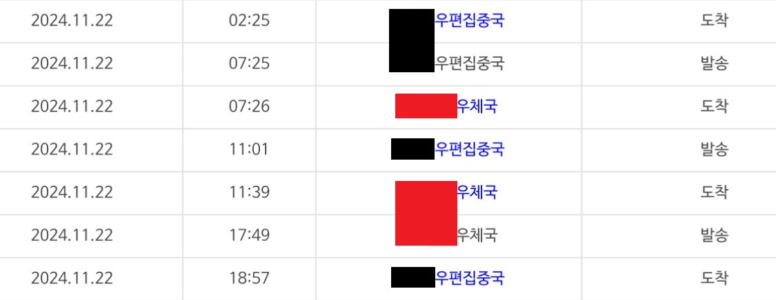 검게 칠한 곳과 빨갛게 칠한 곳 두 곳을 번갈아 도착/발송/도착/발송을 찍으며 바쁘게 움직였더라. 도대체 왜..;;;