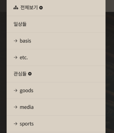 확실히 새 글 표시가 없는 게 깔끔한데.. 어쨌든 글 하나 썼을 뿐인데 전체 카테고리, 상위 카테고리, 하위 카테고리에 쭉 뜨는 새 글 표시들이 눈에 거슬렸고, 전에 상위 카테고리를 클릭하면 하위 카테고리가 접히게 수정했어서 의미가 없다고 봤기에 상위 카테고리의 새 글 표시는 없어도 될 것 같아 수정하기로 했다.
