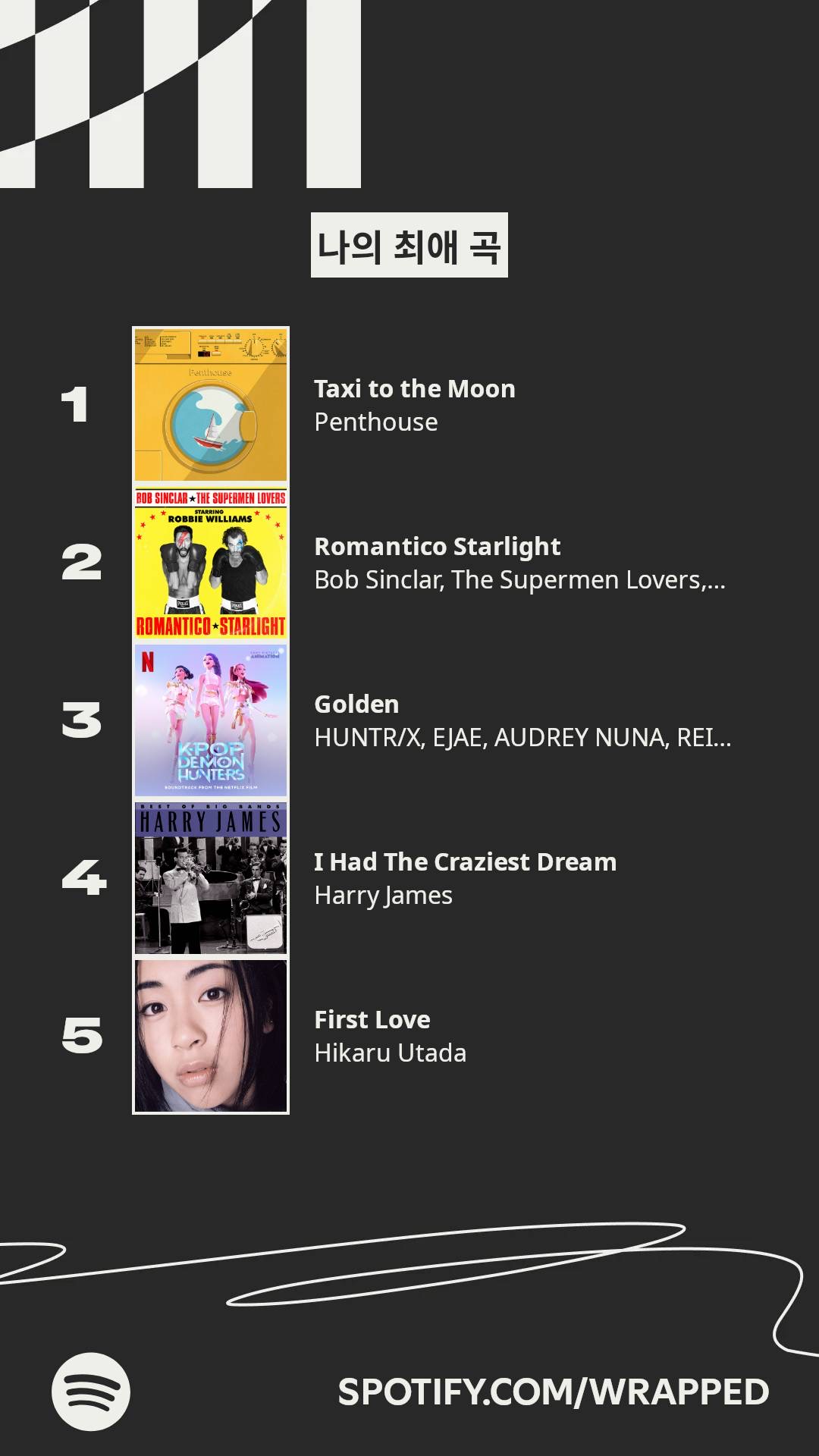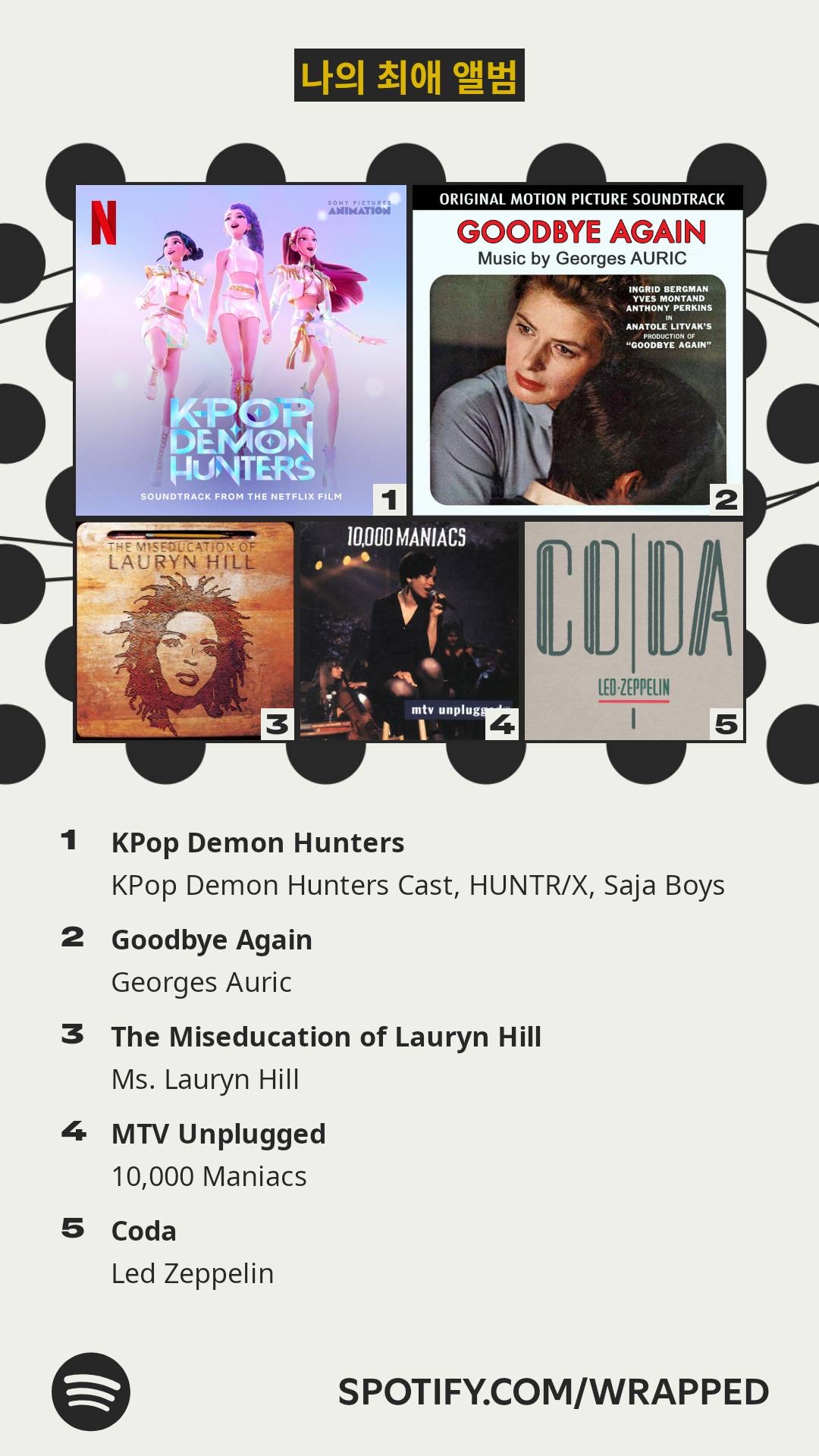 25년 스포티파이 결산 中 2025.12.07 Updated 일상들/basis 88세??!!!!! 뭔 음악을 뭐 얼마나 들었다고 88세는 절대 인정할 수 없고 그저 개성이 좀 돋보이는 음악성향.. 이 정도로 정리하십시다.(´༎ຶོρ༎ຶོ`) 공유하기 게시글 관리 Free as the Wind '일상들 > basis' 카테고리의 다른 글 건강 검진과 사랑니 (0) 2026.01.15 지키겠다는 의지 한 스푼 (0) 2026.01.04 크리스마스에는 사랑을 (0) 2025.12.25 25년의 첫눈 (0) 2025.12.04 12월 하고도 3일 (0) 2025.12.03 감동감동감,,,동 (0) 2025.10.18 댓글 공유하기 다른 글 댓글 이 글 공유하기 구독하기 구독하기 카카오톡 카카오톡 라인 라인 트위터 트위터 Facebook Facebook 카카오스토리 카카오스토리 밴드 밴드 네이버 블로그 네이버 블로그 Pocket Pocket Evernote Evernote 다른 글 지키겠다는 의지 한 스푼 지키겠다는 의지 한 스푼 2026.01.04 크리스마스에는 사랑을 크리스마스에는 사랑을 2025.12.25 25년의 첫눈 25년의 첫눈 2025.12.04 12월 하고도 3일 12월 하고도 3일 2025.12.03 다른 글 더 둘러보기